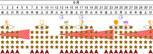 5月中頃の台風、ハリケーン、サイクロンの発生に用心しましょう。<☆生命の環境/★失敗の環境>