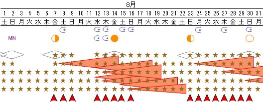 低気圧の発達、台風が生まれるのは月前半が多いでしょう。今月のMF、MNは大潮と近い日です。このあたりは火山活動注意日です。28日の満月は皆既月食で、強い引力が働きます。